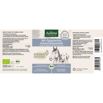 AniForte Bio Ägyptisches Schwarzkümmelöl ist ein naturbelassenes Öl aus kontrolliertem biologischem Anbau, welches sich zur täglichen Versorgung Deines Tieres mit essenziellen Fettsäuren eignet. Das Öl unterstützt das Immunsystem und die Nierenfunktion Deines Lieblings auf ganz natürliche Weise