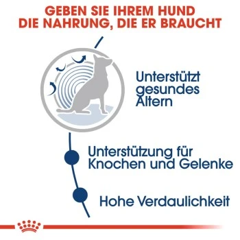 Um den individuellen Vorlieben verschiedener Hunde gerecht zu werden, ist ROYAL CANIN MAXI Adult auch als knuspriges Trockenfutter erhältlich. Wenn Sie eine gemischte Fütterung von Trocken- und Nassfutter in Betracht ziehen, befolgen Sie einfach unsere Fütterungsempfehlungen. So stellen Sie sicher, dass Ihr Hund die richtige Menge an Nass- und Trockenfutter erhält.